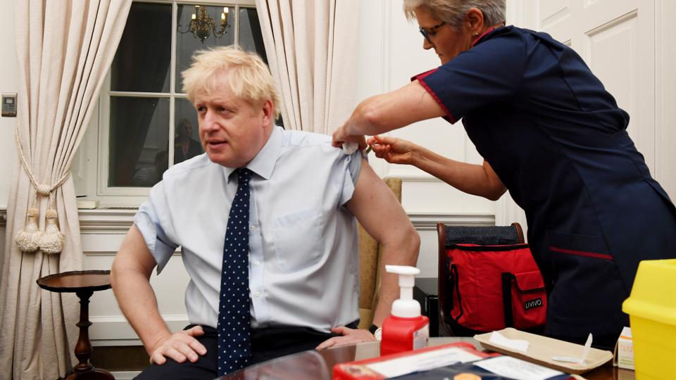 Johnson, 56 vjeç, mori vaksinën e tij në të njëjtin spital ku pothuajse një vit më parë ai u vendos në njësinë e kujdesit intensiv dhe iu dha oksigjen përmes një gypi në hundë pasi ai mori virusin dhe u sëmur rëndë. Ai më vonë tha se ishte aq i sëmurë saqë u përgatiten plane se si të njoftohet vdekja e tij.