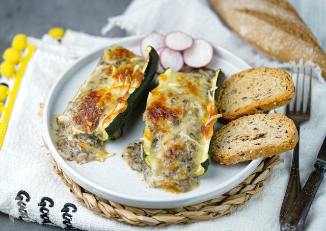 Recetë për 4 persona/ Përbërësit: 4 kunguj të njomë, 1 lugë gjelle vaj ulliri, 1 lugë trumëz e freskët, 2 lugë gjelle gjalpë, Karkaleca sipas dëshirës, 2 domate, të copëtuara, 3 thelpinj hudhër, gjysmë limoni, djath mocarela i grirë sipas dëshirës, kem parmigiano, majdanoz i freskët i grirë, për dekorim (sipas dëshirës).