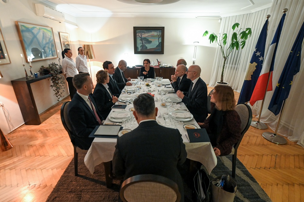 Gjatë darkës që u zhvillua në rezidencën e ambasadorit francez në Kosovë, gjithashtu u diskutua edhe për hapat dhe rrugën përpara drejt formimit të institucioneve të legjislaturës së nëntë pas certifikimit të rezultateve të zgjedhjeve të 9 shkurtit dhe seancës së thirrur nga presidentja e vendit për 15 prill.