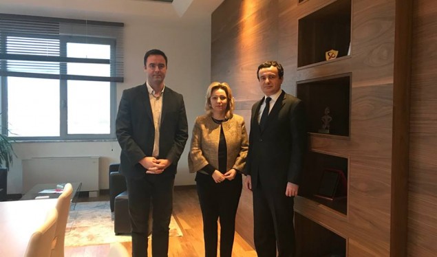 Kryetari i Lëvizjes Vetëvendosje Albin Kurti dhe kryetari i Grupit Parlamentar të Lëvizjes Vetëvendosje, Glauk Konjufca, takuan shefen e Zyres së BE-së në Kosovë, Natalija Apostolova.