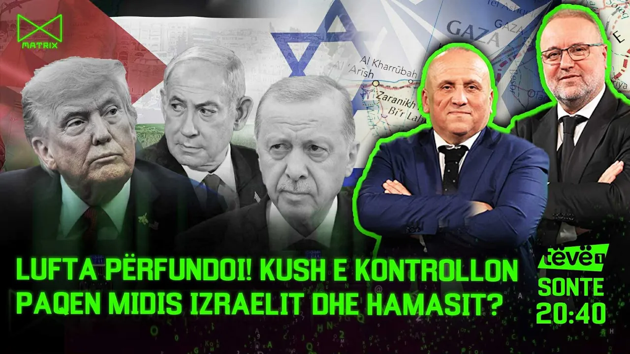 Kush e kontrollon paqen midis Izraelit dhe Hamasit? – Mehmet Kalisi & Ilir Kulla – MATRIX | @teve1 13/10/2025 Share this: Click to share on Facebook (Opens in new window) Facebook Click to share on X (Opens in new window) X