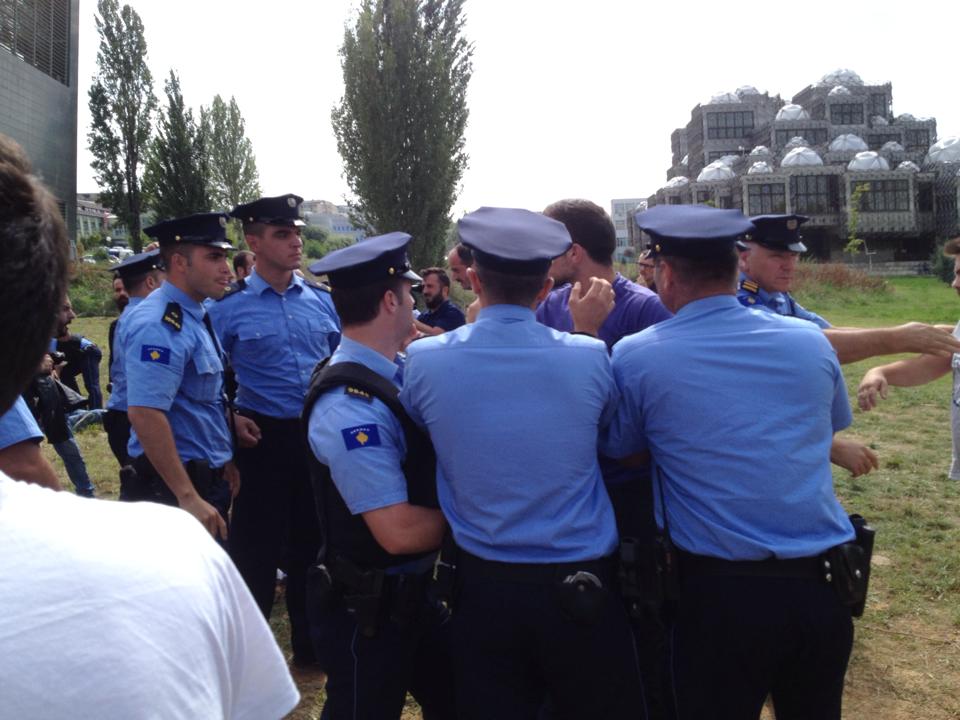 Katër studentët e arrestuar nga Policia e Kosovës në afërsi të kishës serbe në oborrin e UP-së janë liruar. KosovaPress mëson se është lënduar një policë.