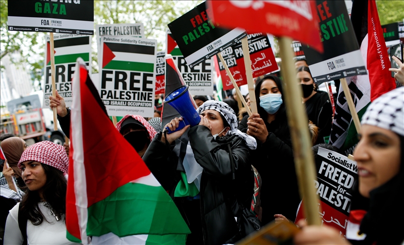Qytetarët e Londrës marshuan nëpër rrugët e kryeqytetit të Britanisë në solidaritet me palestinezët, raporton Anadolu Agency (AA).