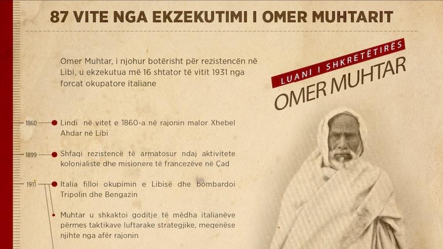 Kanë kaluar 87 vite që nga ekzekutimi i Omer Muhtar, i cili u bë një simbol botëror me rezistencën që ai kreu kundër forcave pushtuese italiane në Libi dhe u quajt “Luani i shkretëtirës”, transmeton Anadolu Agency (AA).