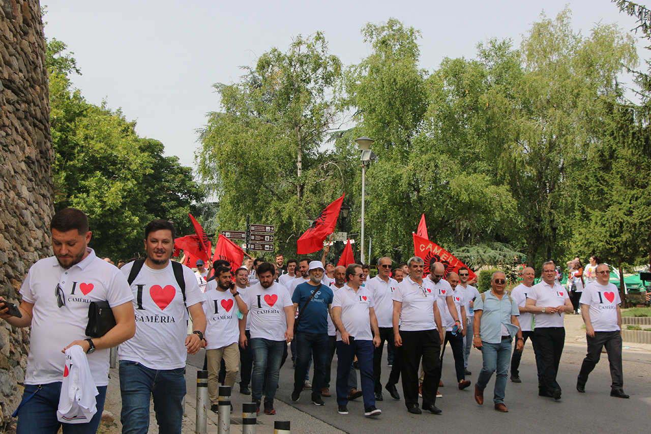Në kuadër të Javës Çame, në Shkup sot u organizua marshi për Çamërinë, i cili filloi nga Kalaja e Shkupit deri te Ambasada e Greqisë, raporton Anadolu Agency (AA).