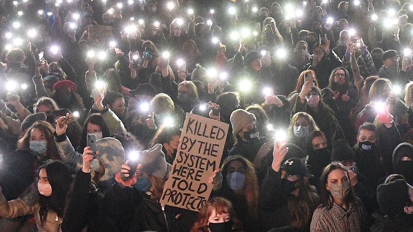 Të shtunën, një turmë e madhe u mblodh në Clapham Common për të bërë homazhe edhe pse tubimet e planifikuara në të gjithë vendin u anuluan për shkak të masave pandemike. Trupi i Everard, u gjet brenda një çantë të ndërtuesve në një zonë të pyjeve në Ashford Kent të mërkurën, dhe u identifikua përmes historisë dentare.
