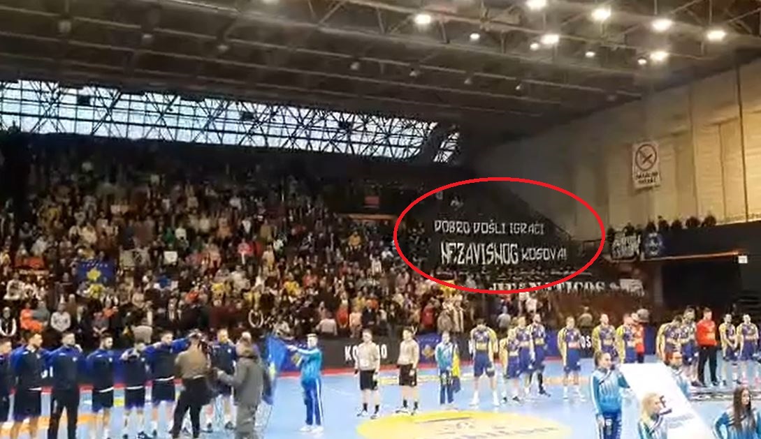 Tifozët boshnjakë gjatë intonimit të himnit të Kosovës kanë shpalosur një mesazh.
