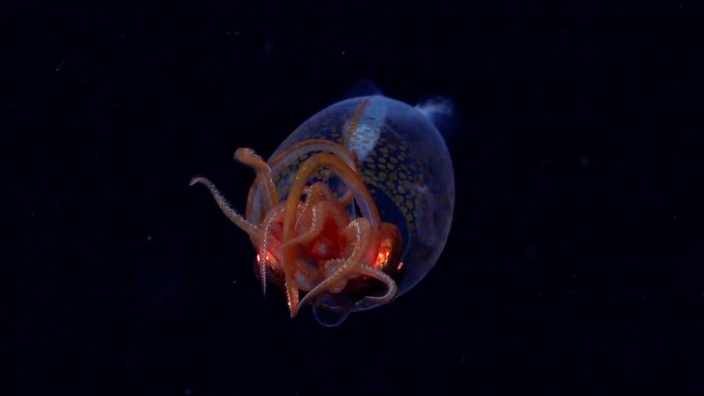 Një ekip në bordin e Falkor, një mjeti lundrues të Schmidt Ocean Institute arriti ta filmonte teksa notonte në thellësitë e ujërave midis Argjentinës dhe Antarktidës.