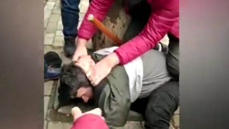 Në video, shihet se si Rudolf Nikolli, 34 vjeç nga Burreli, u neutralizua fillimisht nga besimtarët, përpara se të ndërhynte policia.
