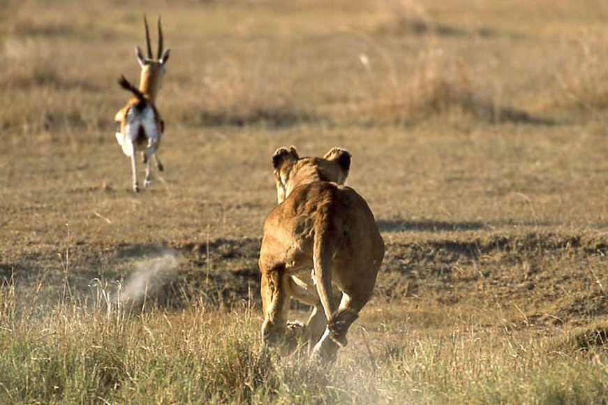 Megjithatë, në shumicën e përndjekjeve të luanit, kaprolli bie pre e luanit.