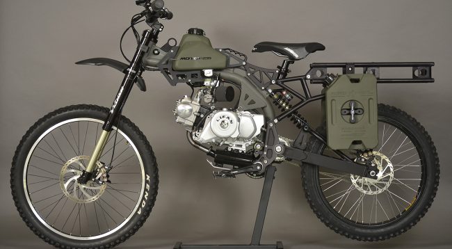 ‘Bike Survival’ është në të vërtetë një biçikletë me motor të dizajnuar, siç e vë në dukje edhe faqja e MOTOPED, “një super-transportues utilitar, i frymëzuar nga ushtria”, ideale për tu përshtatur në stilin në dy rrota, transmeton lajmi.net.