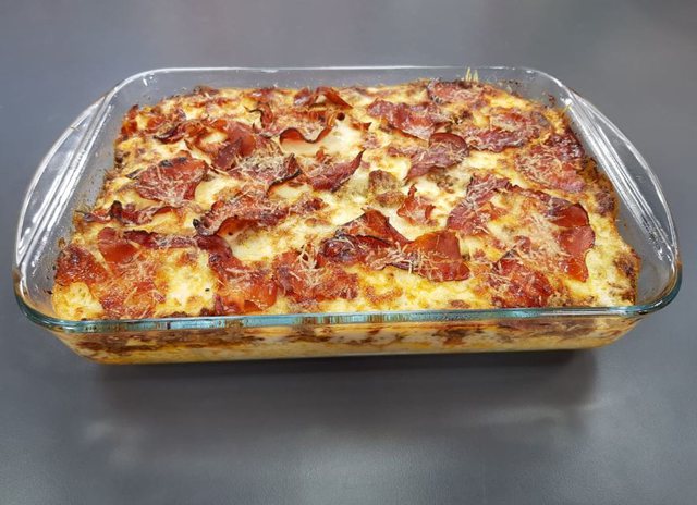 Përbërësit: 1 kg lulelakër, 1 lugë gjelle miell, 1 kokërr vezë, kripë, piper i zi, arrë moskat, 100 g djathë, vaj ulliri, 500 g mish i grirë viçi, 1 qepë, 2 thelpinj hudhra, 1 lugë kafe piper i kuq, 2-3 lugë gjelle djathë Parmigiano dhe 6-8 feta proshutë krudo.