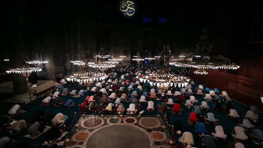 Në sheshin Sultanahmet dhe Xhaminë e Madhe të Ajasofjes besimtarët u pranuan pasi kaluan kontrollet nën masa intensive të sigurisë.