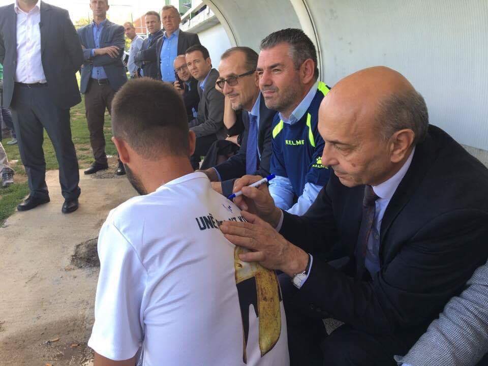“Të dashur miq, Pata kënaqësinë e veçantë që t’i vizitojë sot në kampin stërvitor në Drenas, lojtarët e përfaqësueses së Kosovës në futboll, të cilët do të përballen të enjten me Kroacinë.