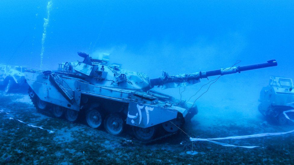 Tanke ushtarake, një helikopter dhe një automjet i blinduar janë vetëm disa nga pajisjet ushtarake që zhytësit do të shohin në shtratin e detit pranë qytetit jordanez të Aqaba, në muzeun e parë ushtarak nënujor të vendit.