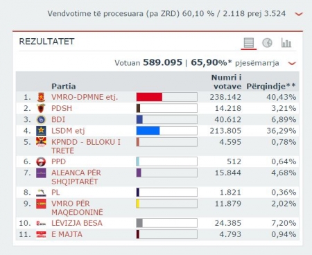 Ajo ka 40.43 për qind të votave, derisa LSDM-ja ka mbetur e dyta me 36.29 për qind.