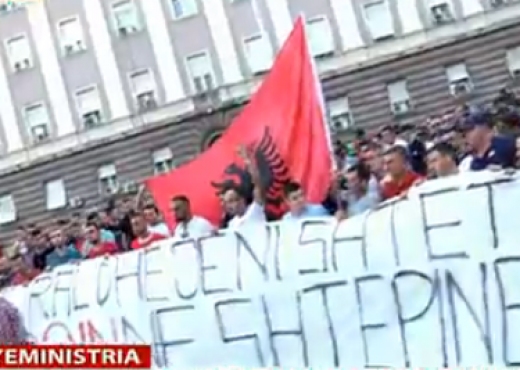 Protestuesit kanë dalë me brohoritje para Kryeministrisë duke mbajtur një banderolë të madhe në të cilën shkruhet: “Në keni moral e në jeni shtet, ktheni heroin në shtëpinë e vet”.