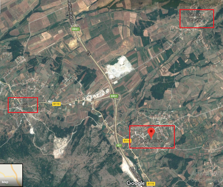Fotografi nga Google Maps mbi fshatrat Banje, Bellanice dhe Senik Foto: Google Maps