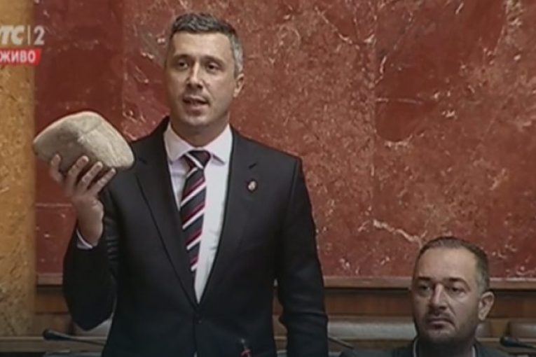 Kryetari i grupit të përfaqësuesve të Lëvizjes Dveri, Boshko Obradoviç, në seancën e së martës të Kuvendit të Serbisë ka kërkuar që të pranohet rezoluta e lëvizjes së tij, rreth “mbrojtjes së Kosovës” dhe ka treguar një gur të madh, të cilin siç ka thënë e ka sjellë nga Kosova.