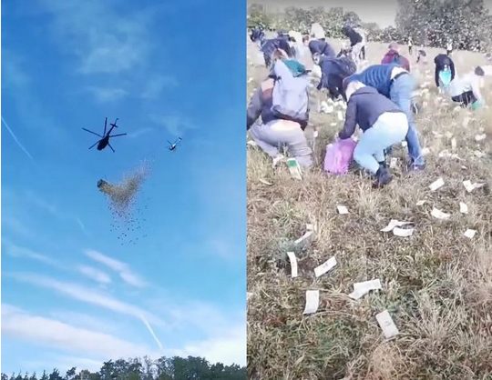 Ai u ka dhuruar kalimtarëve të çastit një milion dollarë të cilat i ka hedhur nga një helikopter në ajër.