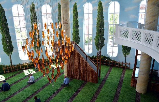 Kjo xhami po tërheqë vëmendjen e shumë besimtarëve, por edhe turistëve, dhe e gjithë kjo për shkak të arkitekturës unike – një tavan i stolisur me motive nga qielli i bukur, dhe një qilim që duket si bari; Të gjitha këto janë frymëzuar nga një ajet në Kur’an.
