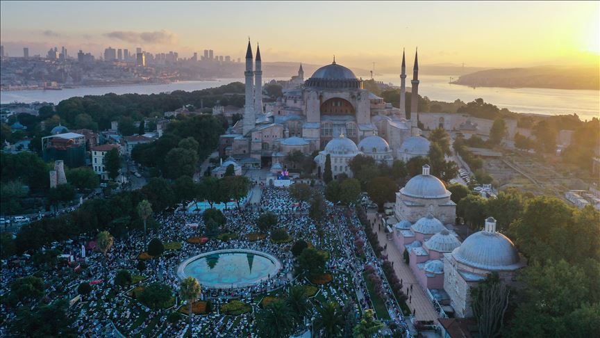 Mijëra qytetarë përjetuan emocionin e namazit të parë të Bajramit në xhaminë e Ajasofjes, e cila deri në çlirimin e Stambollit u përdor si kishë për 916 vite dhe më pas si xhami nga viti 1453 deri në 1934. Pas kësaj me një vendim të marrë ajo ofroi shërbim si muze dhe javën e kaluar u rihap sërish për adhurim me faljen e namazit të xhumasë.