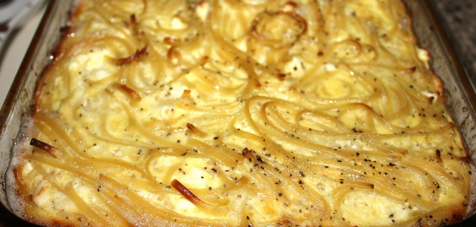 Ziejmë makaronat për vetëm 5 minuta. I heqim nga zjarri i kullojmë dhe i hedhim në tavë duke i hedhur dhe përzier me pak vaj që të mos ngjiten. Rrahim vezët, shtojmë qumështin dhe më pas djathin dhe vajin. I trazojmë të gjitha bashkë dhe këtë masë e hedhim mbi makarona duke e trazuar. Gjalpin e shkrijmë dhe e hedhim hedhim sipër mbi makaronat. I fusim në furrë në temperaturën 200 gradë dhe e leme për 45 minuta.