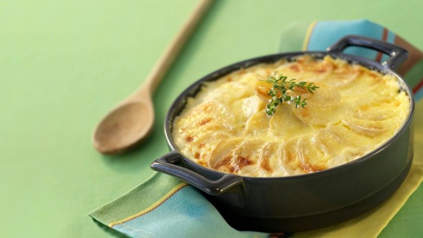 1. Qëroni patatet, pritni në feta dhe qitni sipër jogurtin e përzier me erëza.