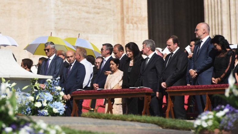 Presidenti Hashim Thaçi, kryeministri Isa Mustafa e kryeparlamentari Kadri Veseli shkuan në Selinë e Shenjtë në Vatikan për ta përcjellë ceremoninë e shenjtërimit, pavarësisht se ligji nuk e lejon që ata të jenë në të njëjtën kohë jashtë shtetit.