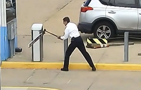 Ai u kap nga kamerat e sigurisë duke e prerë me sepatë portën prej druri të parkingut.