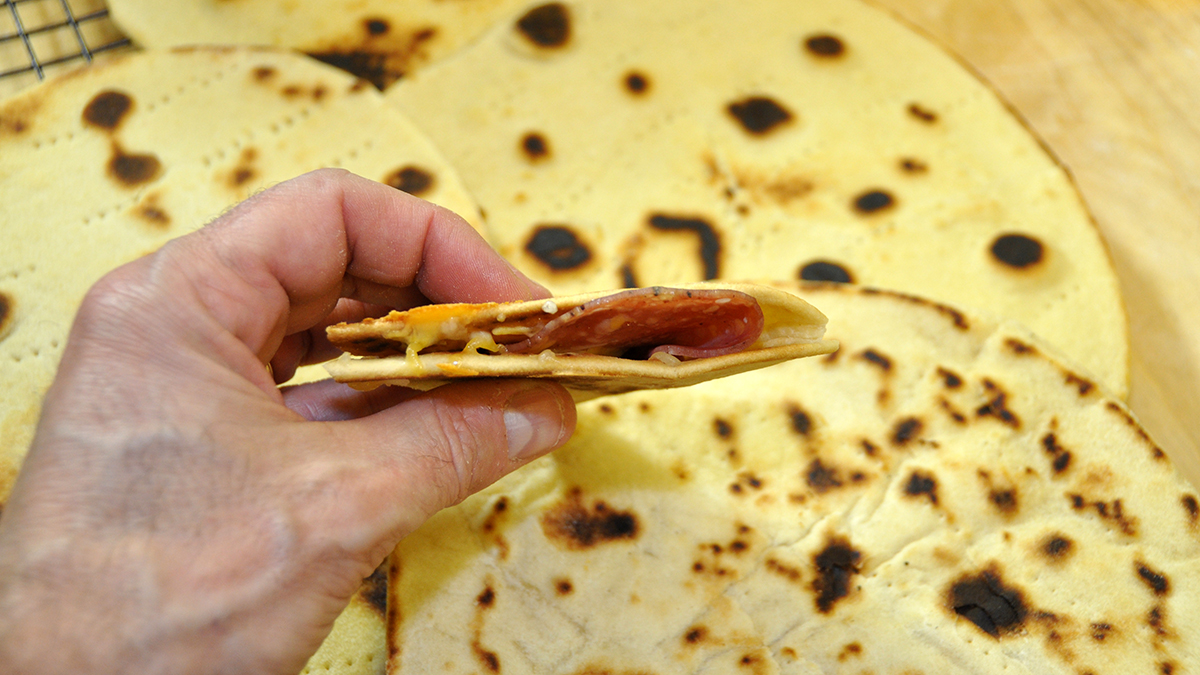 Ne ju sugjerojmë që t’i lyeni me pak salcë kosi, gjizë apo krem djathi dhe të shtoni brenda pak sallatë jeshile apo rukola.