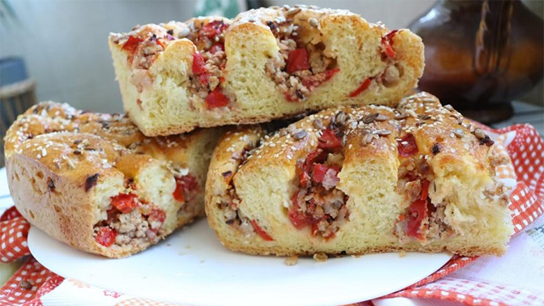Në vaj fërgoni qepën e grirë, shtoni specin e grirë dhe mishin e bluar dhe në fund domaten e prerë në kube.