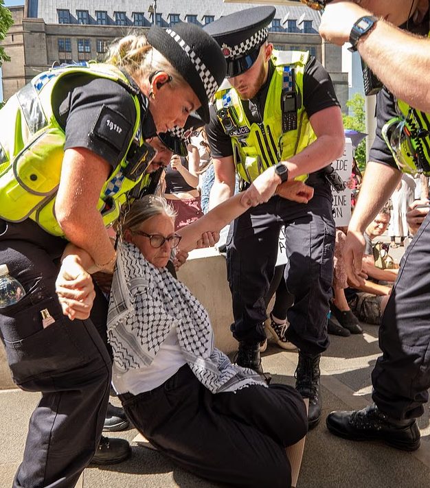 Protestuesit kundërshtuan gjithashtu ndalimin e grupit Palestine Action, i cili së fundmi është shpallur organizatë terroriste.