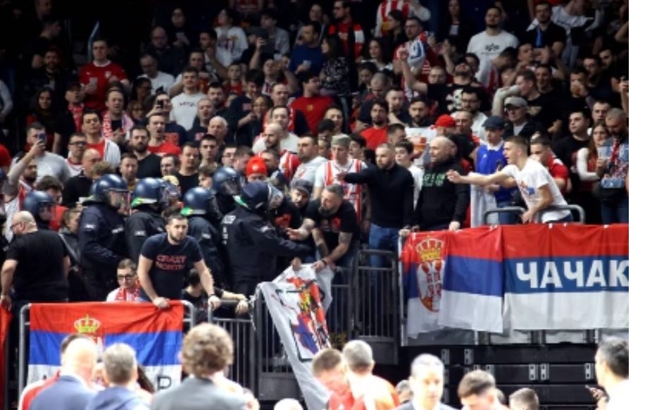 Serbët tentuan që ta mbanin flamurin përsëri, por që vendimi ishte i padiskutueshëm, të largohet flamuri ose do të largohen tifozët propagandues nga palestra.