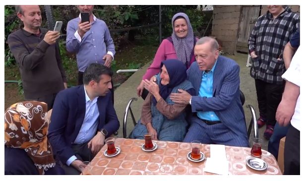 الرئيس اردوغان عشية الانتخابات يزور مسنة تركية كانت جارتهم قديما