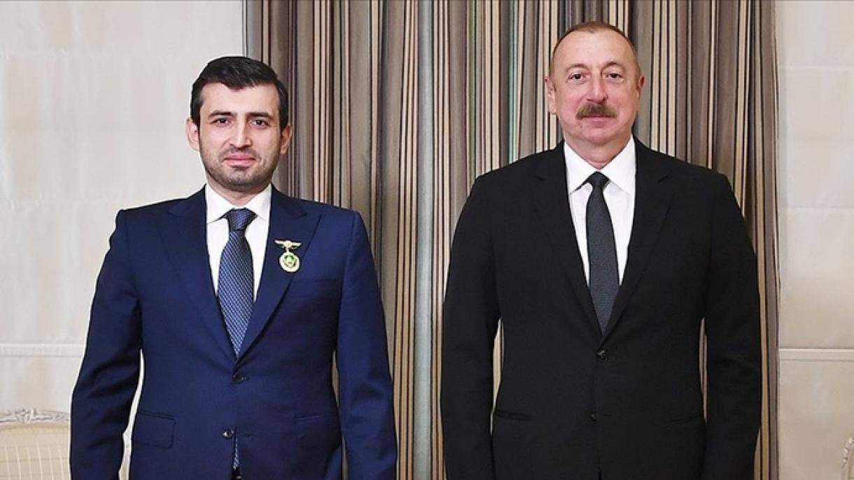 Pas pritjes, Aliyev i dorëzoi Selçuk Bayraktarit “Dekoratën e Karabakut”, i cili jepet për të shpërblyer ushtarët dhe civilët që shërbyen në çlirimin e tokave azerbajxhanase në luftën e Karabakut Malor nga pushtimi armen.