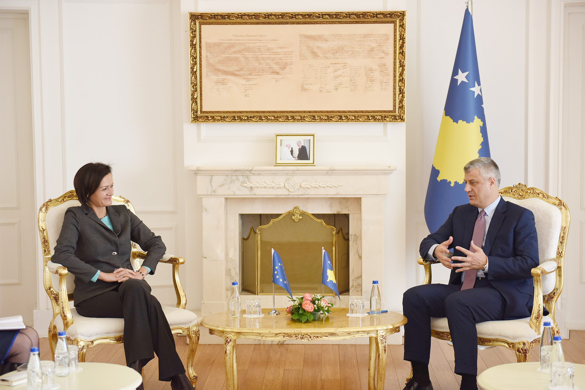 Presidenti i Republikës së Kosovës, Hashim Thaçi, priti sot Drejtoreshën për Ballkanin Perëndimor të Shërbimit të Veprimit të Jashtëm Europian, Angelina Eichhorst, me të cilën bisedoi për zhvillimet e fundit në relacion me BE-në në Kosovë.