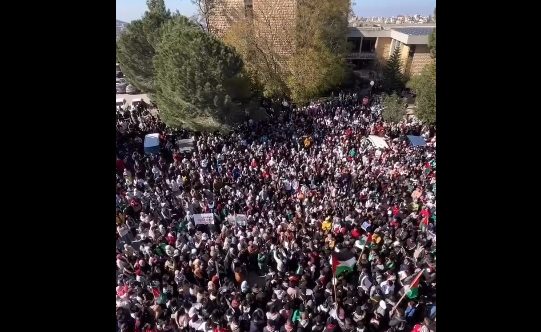 The students of Birzeit university take part in a a vigil in protest of the Israeli massacre in Jenin refugee camp.#جنين pic.twitter.com/ynI0fSYz0W