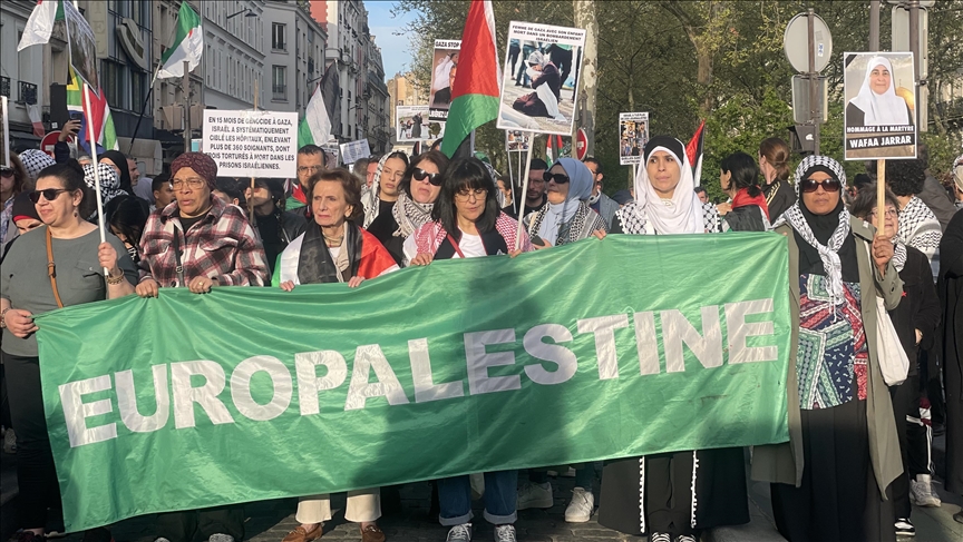 Shumë njerëz në mbështetje të Palestinës janë mbledhur pranë stacionit të metrosë Barbes-Rochechouart në kryeqytetin francez Paris për të protestuar kundër sulmeve izraelite në Rripin e Gazës, raporton Anadolu.
