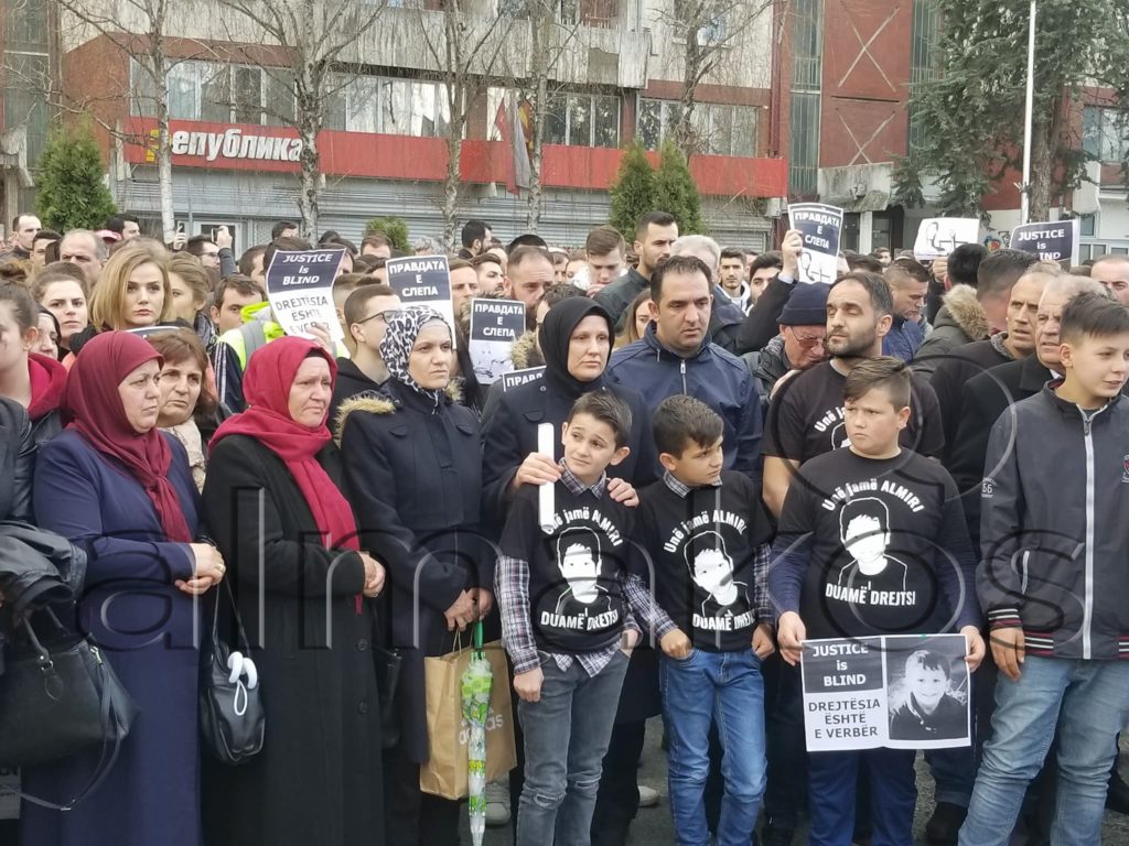 “Jovevski është reforma juaj, Joveski nuk është reformë. Kërkojmë përgjegjësi nga Qeveria e Maqedonisë dhe Zoran Zaev. Ai jo vetëm që si realizoi reformat në gjyqësor, por lejuan që drejtësinë ta ndajnë gjykatësit e korruptuar. Kërkojmë drejtësi për Almirin. Pa drejtësi nuk ka paqe. Pa përgjegjësi nuk ka paqe”, u tha më tej, raporton SHENJA.