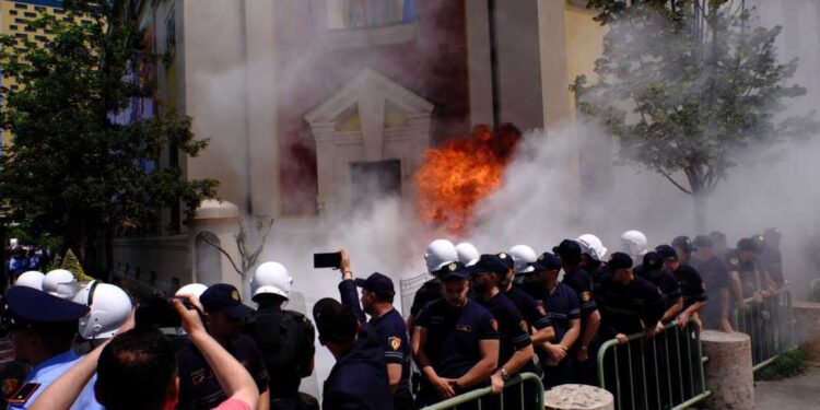 Opozita proteston për herë të nëntë para Bashkisë së Tiranës. Njësoj si edhe në tubimet e tjera, tubuesit kanë hedhur molotov para godinës duke rrezikuar efektivët e policisë dhe jo vetëm.