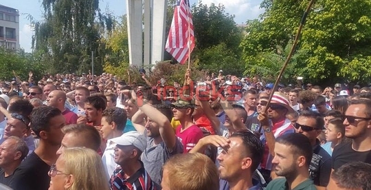 Protestuesit që po qëndrojnë prapa Kuvendit të Kosovës, me të marr lajmin për tërheqjen e demarkacionit nga rendi i ditës së seancës së sotme plenare, kanë nisur të brohorasin, duke e quajtur këtë vendim fitore të tyren.