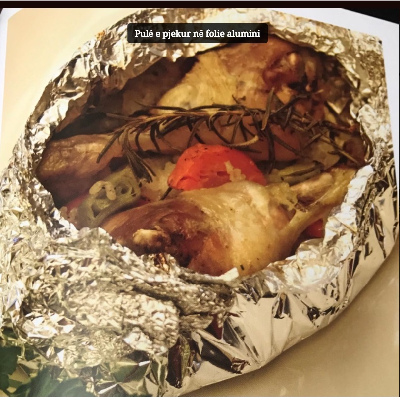 Pas nje ore pjekje e vertetojem me pirun dhe nese piruni shpon lehte mishin atehere ai eshte i gatshem ,dhe tani e hapim folien e aluminit dhe e leme ne furre pluen edhe per 10-15 minuta ne temperature me te madhe diku 250 grade.Per servim e largojme nga folia pasi te ftohet pak dhe perimet e pjekura i qesim rreth mishi.
