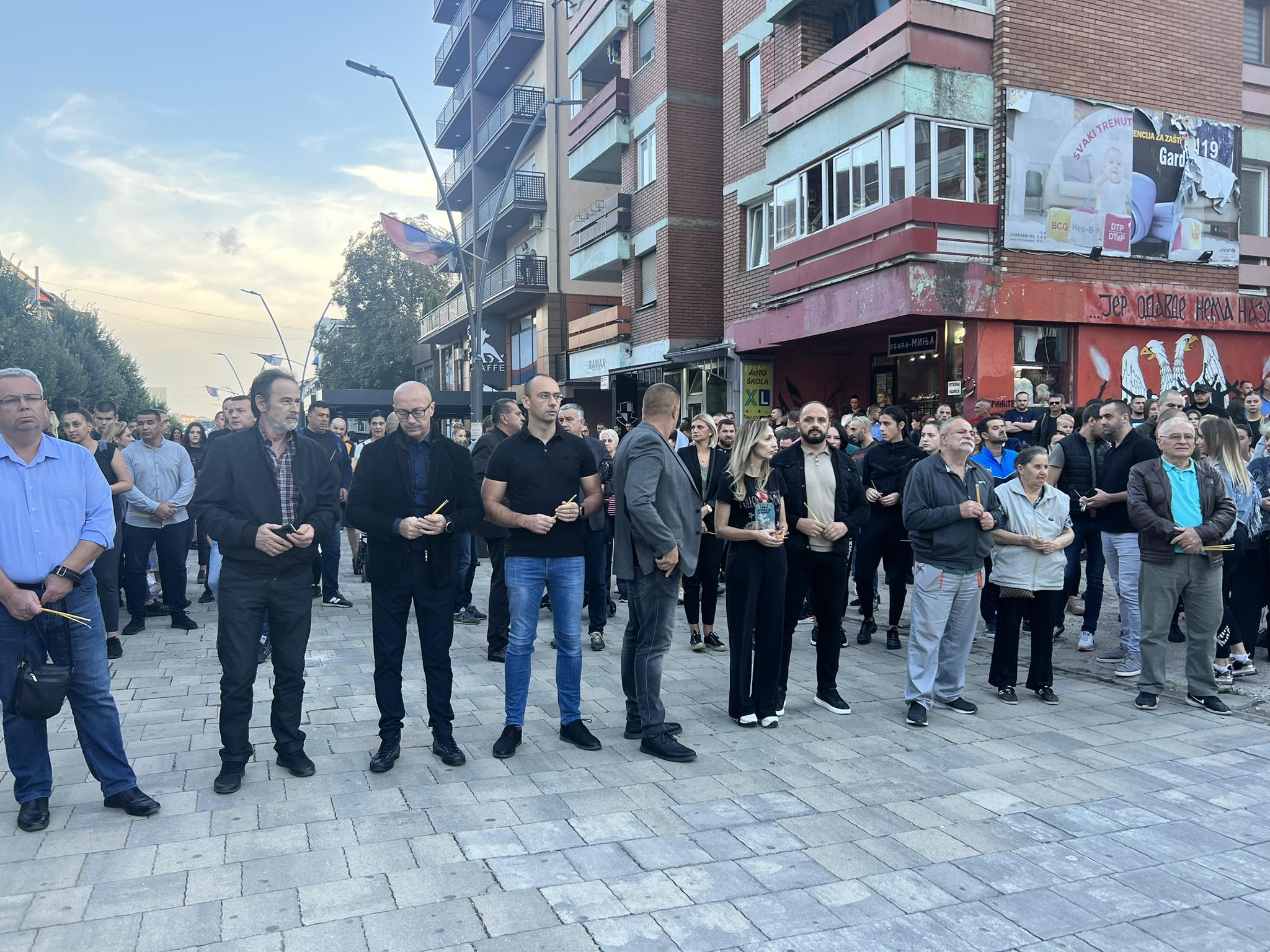 Ndërkaq, pjesëtarë të Listës Serbe kanë mbledhur qytetarë e familjarë të shumtë në sheshin “Car Llazari” në Mitrovicë, për të “nderuar” sulmuesit e vrarë në fshatin Banjskë.