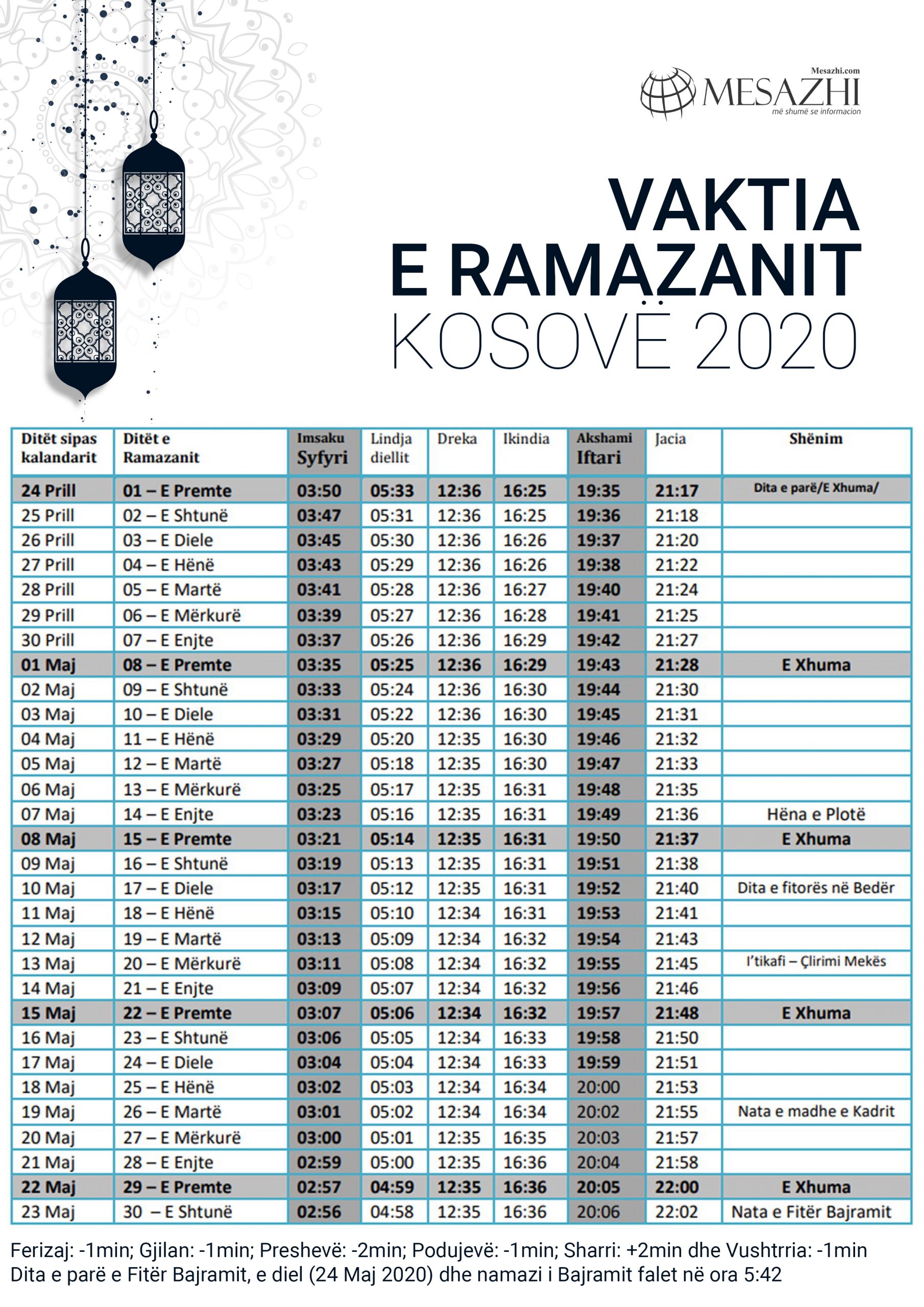 Vaktia e Ramazanit 2020 Mesazhi.com
