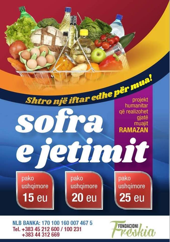 Fondacioni Freskia, i cili fondacion është vendor, synon shtresat nevojtare të shoqërisë. Kësaj here, ju do të keni mundësi të kontriboni për të shtruar një sofër Ramazani për fëmijët jetim.