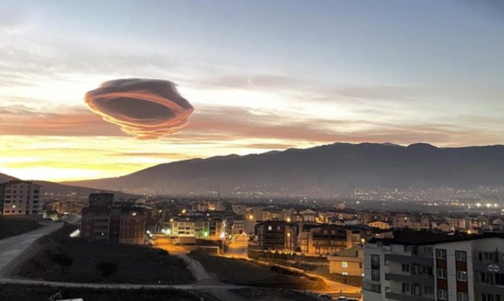 Qielli mbi qytetin turk Bursa dukej surreal, me një pamje unike pas shfaqjes së një reje rozë në formë aspak të zakontë.
