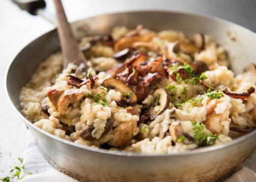 Përbërësit: 300 gr mish gjoks pule, 150 gr oriz, 300 ml lëng perimesh, 50 gr djathë parmesan,