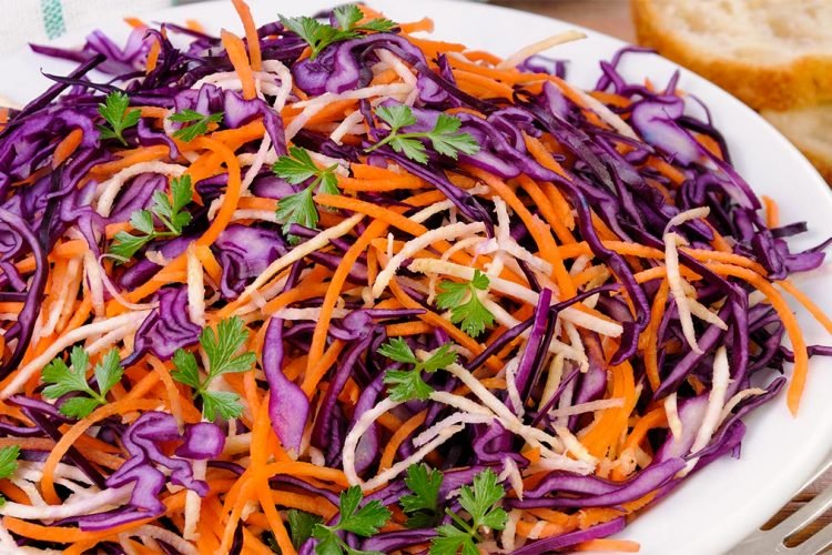 I pastrojmë mirë lakrat dhe karrotat dhe më pas i grijmë hollë përmes një thike të mprehtë. I hedhim në një tas të madh prej qelqi. U hedhim kripë dhe piper dhe i shtypim pak me duar në mënyrë që fortësia e tyre të zbutet. Më pas, i marinojmë me vaj ulliri dhe lëng limoni. Sipas preferencës mund të shtoni edhe pak uthull. Në fund sallatës i shtohet pak majdanoz i grirë hollë./AgroWeb