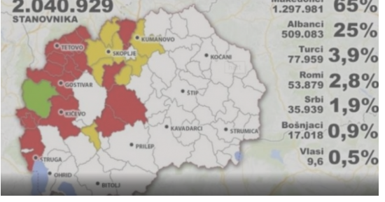 Portali serb ‘srbijadanas’ ka publikuar një hartë të përqindjes së shqiptarëve në Maqedoni, ku bie në sy mbizotërimi në Çashkë dhe Dollnen, komuna këto në Maqedoninë qendrore.